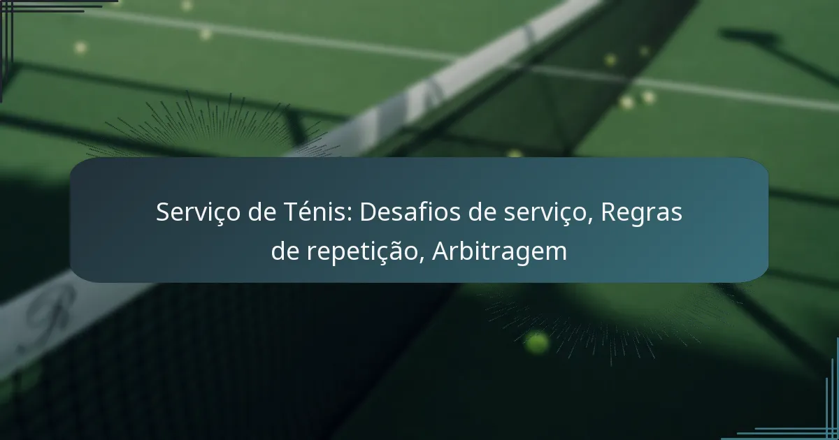 O serviço no ténis envolve vários desafios e regras que garantem um jogo justo durante os encontros. Os desafios de serviço permitem que os jogadores questionem a precisão das chamadas de serviço, enquanto as regras de repetição fornecem clareza sobre quando um serviço pode ser repetido. Uma arbitragem eficaz é crucial, uma vez que os árbitros têm a tarefa de fazer chamadas precisas que podem influenciar grandemente o resultado do jogo.